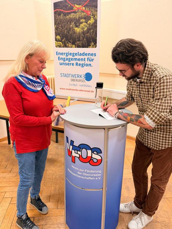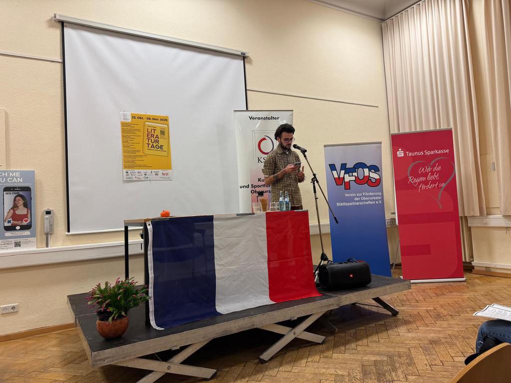 Vor der Lesung konnte Alexis Pierre gemeinsam mit weiteren französischen Gästen Oberursel bei einer Stadtführung näher kennenlernen. Ergänzt wurde das Programm auch durch einen Stadtrundgang in Frankfurt.